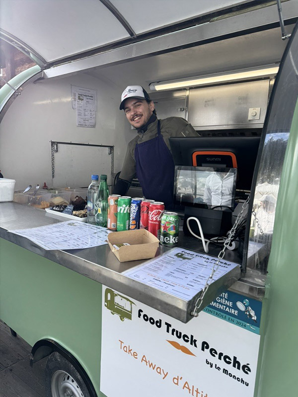 Visible de la piste des Rhodos, notre Foodtruck est fait pour les petits et les grands. Une pause rapide en toute simplicité.