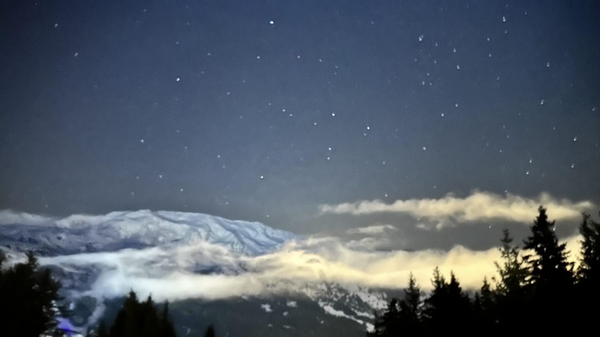 Une montée et une descente en dameuse sur la piste des Rhodos en pleine nature et sous les étoiles.