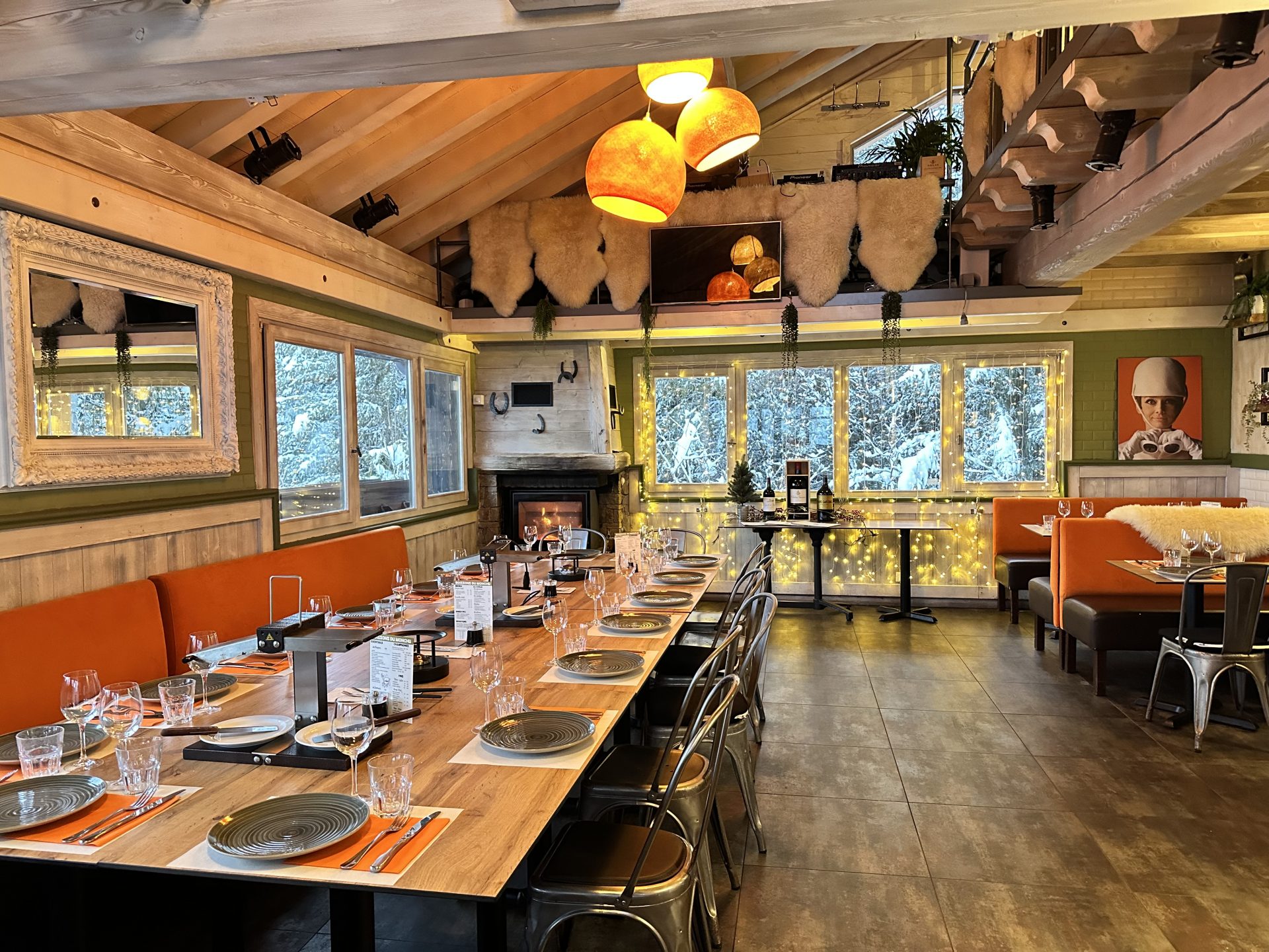 Départ rond point des pistes (accès navettes, taxis, parking voiture) – plat végétarien – animation musicale selon les soirées.