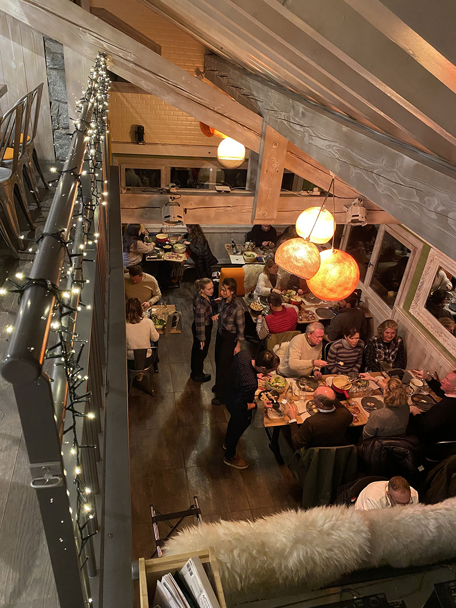 Un dîner dans le cadre chaleureux de notre chalet avec une carte de spécialités savoyardes et de recettes gourmandes préparées par le chef Olivier.